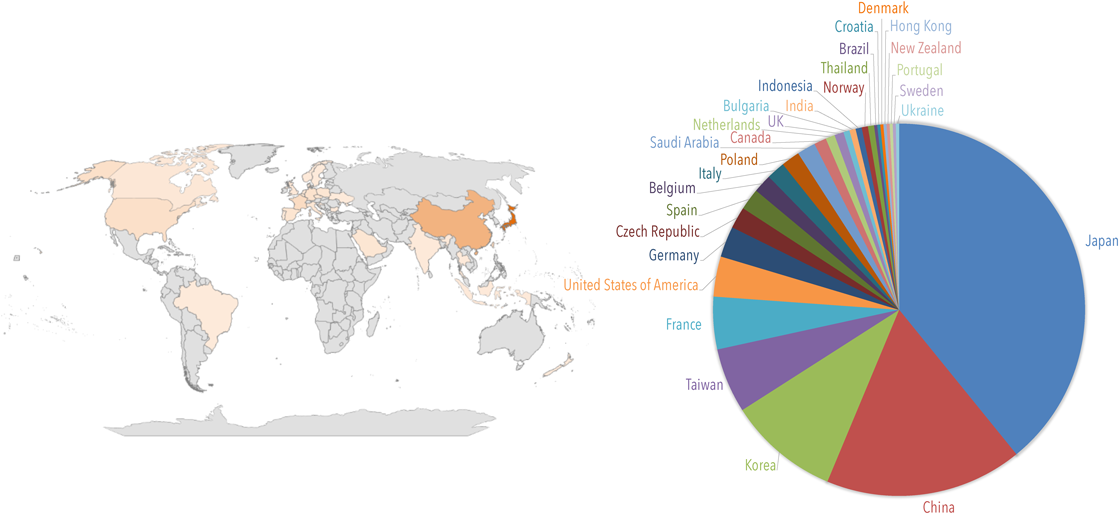 Post-symposiumは,post-ZMPC2024 School(第31回ゼオライト夏の学校)として,2024年7月25日から27日に京都山科にある京都山科 ホテル山楽で開催された。5名の講演およびバンケット中に学生による英語でのショート口頭発表18件があり,活発な議論がなされた。また,参加者は37名で日本,中国,台湾,ニュージーランド,ポーランド,サウジアラビアからなど多岐に及んだ(図4)。エクスカーションは,25日は万博記念公園太陽の塔内部見学,26日は上賀茂神社,金閣寺を訪れた。